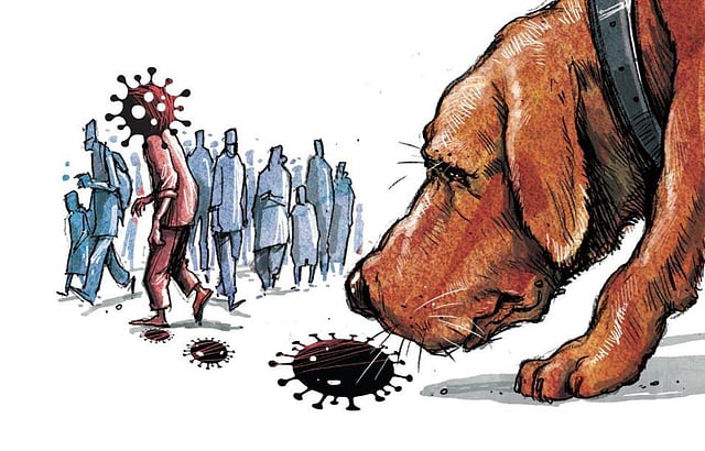 A study published in a peer-reviewed journal, PLOS One, said that trained dogs can detect, with a high degree of accuracy, asymptomatic and mild Covid-19 infections in human beings by body odour under laboratory conditions.
