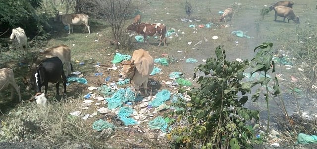 At least 10 cows were also spotted nibbling on the medical waste, causing a health hazard not just for humans but animals as well.