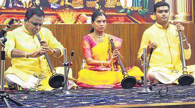 Nadaswaram is also called mangala vadyam (auspicious instrument). Compared to western instruments, this will always stand out for its charm. It continues to enjoy the status of being played at temples, traditional functions in south Indian households and weddings,” says TK Vijayalakshmi. The artiste has been playing the instrument since class eight. After learning the basics from her father, she trained under Injikudi Subramanian at Government Arts College, Thiruvarur. “I sacrificed more after motherhood. My practice hours came down and there was a break from playing. But I bounced back within a few years with support from family and husband.