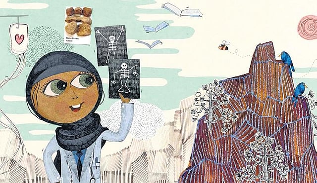 When I read the script for the first time, I don’t just read it, I try to see what visuals are taking form inside my head. Earthy clay, teatime biscuits, honey, roasted almonds — all appeared to me as objects forming a colour palette. And I kept thinking ‘How do I incorporate these real objects into the book?’ A girl who loves coding, a boy who wants to bake, a differently-abled writer, a hijab-wearing doctor and a child dreaming of politics — the images are bent upon breaking cliches. And since I love crafting images by hand, I wanted children to explore different materials, find objects and see how they can be used to create images; you can see this in more of my work at @ruchi.saw on Instagram.