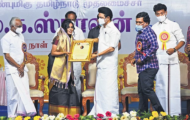 The CM also said he has provided 1.5 lakh books to several libraries including the Srilanka Yalpanam library. These books were presented to him. Stalin, during the ceremony, presented the Kalaignar MU Karunanidhi Porkizhi Award to journalist Samas, veteran theatre director Prasanna Ramasamy, poet Asaithambi, poet and short story writer A Vannila and Malayalam writer Meena Kandasamy. He also presented other literary and BAPASI awards.