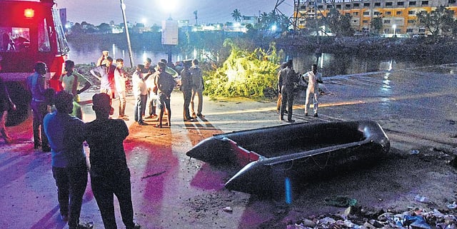 Fire and rescue service personnel, who were pressed into action, continued their search for Kumaresan till 7.30 pm when it became too dark for the operation. An official from the fire and rescue services department said the rescue operation would resume on Monday morning if the river’s currents weakened. An hour after the incident, the department had recovered the two-wheeler.