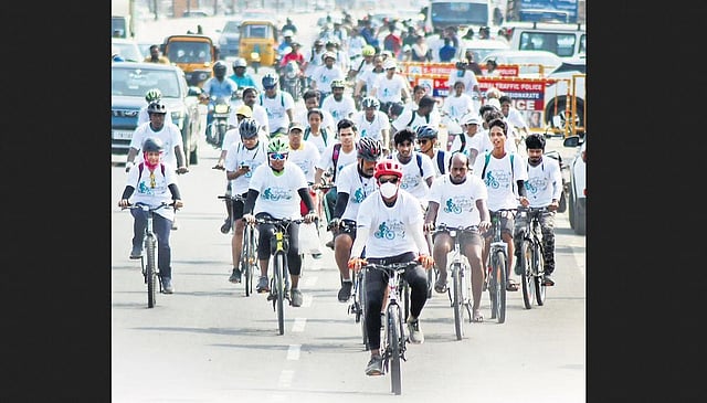 Thaaragai collected 700 kg of plastic along with her father and scuba diving instructor Aravind. There were many of their ilk — like bank employee Kanal Sundaram, who cycles regularly and plants saplings wherever he goes — present at the cycle rally ‘Rally on Wheels’, held at Pallikaranai Marshland Eco Park on June 4.
