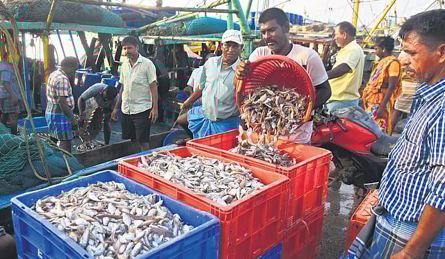 “A little more than 50 boats arrived on Sunday. There are more than 2,000 trawler and Gillnet boats in the city. Around 100 boats return on a daily basis and this number goes up to 150-200 boats during the peak season,” said Dayalan, president of the Indian Fishermen’s Association.