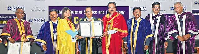 CHENNAI: The SRM Institute’s 18th convocation was held at Kattankulathur near Chennai. Founder-Chancellor of SRM Institute Dr TR Paarivendhar presided over the convocation in which over 7,380 graduates from the Faculty of Engineering and Technology, including 107 PhD Scholars, received degrees and 77 students who have secured first, second and third ranks were awarded gold medals.