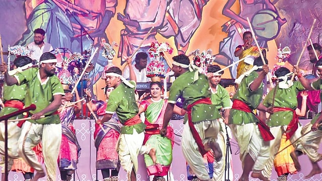 Meanwhile, Sikkaikuchigai Aatam was also showcased by daily wage labourers of Tiruchy vegetable market. “The dance is said to have first originated in Salem as a mode of entertainment for labourers during their free time. I learnt it 40 years ago. As there were not many people who are adept at this art form, I began to teach Sikkaikuchigai Aatam to young daily-wage labourers. We are elated that so many people are coming to know about this folk art and even witness it at festivals like this,” said Mahamuni from Tiruchy.