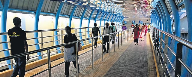 The skywalk-cum-FOB was planned, with six escalators and a ticket counter at the entrance of the station.