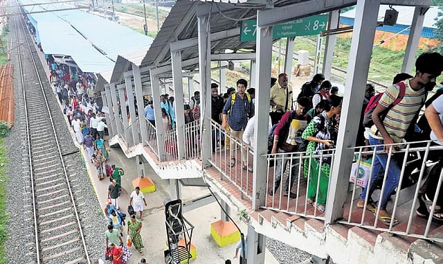 CHENNAI: Hundreds of office-goers and other daily commuters faced inconvenience on Tuesday as the railways cancelled 53 suburban trains in the Beach - Chengalpattu section for five hours. Long-distance travellers scheduled to board trains at Central, Egmore and Tambaram were forced to employ cabs and other modes of transportation.