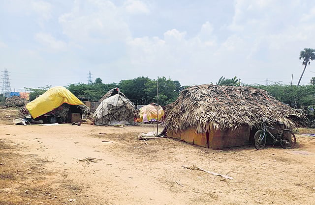 The plight of 15 tribal families in Pakkupettai, a hamlet near Pollivakkam, is even worse. The residents dismantled their huts after the authorities assured them of funds to construct houses following the impact of cyclone Michaung.