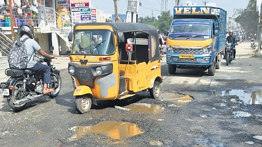 Apart from poor road conditions, accumulation of dust and unregulated traffic are the other major issues plaguing commuters in Perumbakkam, especially during peak hours. People ride two-wheelers in both directions of the main road, further adding to the mess. “Nookampalayam main road connects Perumbakkam with Semmencheri and OMR. There is no metro work happening on this road, yet the battered road is not being relaid,” said N Madan, a vendor from Perumbakkam.