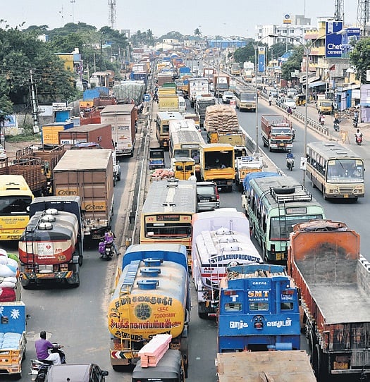 S Ramkumar, a regular commuter on the road, said, “Vehicles often get stuck for nearly two km on the stretch due to the parking of two-wheelers and four-wheelers on the NH carriageway near the fish market at Kavangarai.”