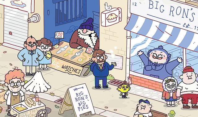 There’s a pie store that’s run out of meat, the mayor who has his hand stuck in a drain hole, and a convenience store that’s overrun with rats (they’ve taken over all the management positions). They all need help. Although it’s not really my job, I, the tiny man, am coerced into saving them.