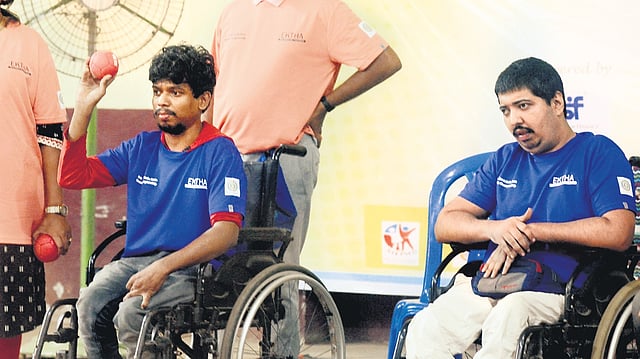 Santhosh and Nalini were among the 80 participants from around 15 districts at the 6th Tamil Nadu State Boccia Championship. The event organised by the Ektha Trust over the weekend had individual tournament matches.
