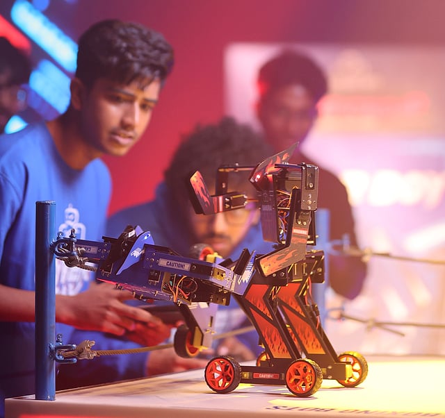 “In China and Japan, five to six-year-olds are introduced to electronics — wires and batteries. That is one area in which we are lacking. Because we are a more software-oriented country. And now, we are stepping into hardware because we are the plan B. If America does not want (to trade with) China, they want India next. So the revolution has to kickstart now,” notes Harish Vardhana, founder and director at KAL-M Robotics and Innovations Pvt Ltd.During this shift, Harish believes it is crucial to build a generation that is not only tech-savvy but also hands-on. “The future of India has bright minds,” he says. “But the shortfall is that we never had any improvement in STEM education.” To fill this major gap in robotics, electronics, and IoT, KAL-M Robotics and Innovations Pvt Ltd has built a specific product — robot boxing — to promote the line of study at a “different level.”