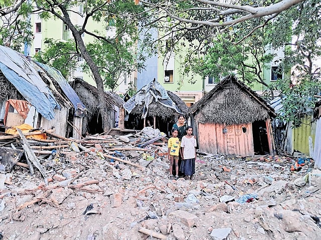 The girl’s mother S Nagalakshmi (40) is among the at least 13 families who were left behind when over 300 families from Ramdoss Nagar and Pirivil Thottam were moved into newly built tenements by the Tamil Nadu Urban Habitat Development Board (TNUHDB) in Moolakothalam in September 2024 from the corporation-owned land.