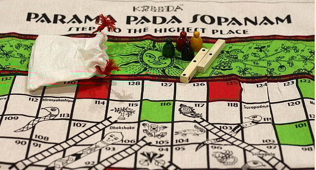 The traditional game of Snakes and Ladders (Parama Padam or Moksha Pattam) has snakes named for characters in Indian mythology who represent a vice, while ladders represent virtues. The game is believed to embody the journey of the human soul as it overcomes vices and moves towards moksha.