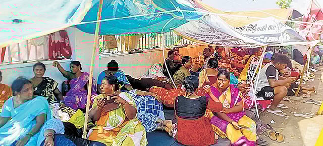 The decision to put an end to the services of the employees runs contrary to the Supreme Court order in FCI case. Stating that the balance of convenience lies in favour of the sanitary workers, he prayed for the court to issue an ad interim injunction against the respondent authorities from outsourcing the services of NULM/SHG temporary workers. The protest by sanitary workers of the Royapuram and Thiru Vi Ka Nagar zones near Ripon buildings against privatisation entered the 11th day on Monday.