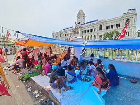 CHENNAI: Advocate Nilavumozhi Senthamarai and law student Valarmathi, who have been supporting sanitation workers protesting against privatisation of solid waste management near Ripon Building since August 1, alleged on Thursday that they were assaulted by the police after the midnight crackdown to evict the protesters from the spot.
