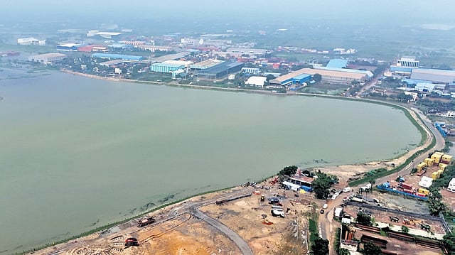 Speaking to TNIE, a corporation official said the project involves the construction of sedimentation pond at lake inlet, to protect the water quality and depth of the water body. This helps the sediment-laden soil settle in the inlet before the runoff is discharged.