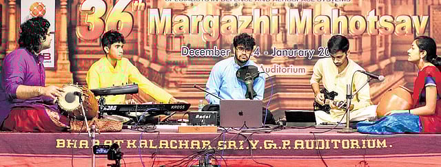CHENNAI: The musical dialogue between violin, mandolin, keyboard, mridangam, and ghatam brought vibrancy to the stage on a Sunday morning at the 36th Margazhi Mahotsav, presented by Bharat Kalachar in association with Data Patterns. Rasikas witnessed the synergy between the young artistes who visited the city during Margazhi. Rishabh Ranganathan (violin), Vishwas Hari (mandolin), Vassanth Ranganathan (keyboard), Sarvesh Karthick (mridangam/pads), and Samyuktha Sreeram (ghatam) let their instruments talk.
