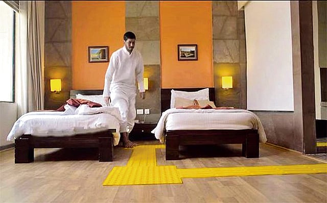 Concrete indicators placed strategically help in easy spatial transitions, such as changes in rooms and proximity to doorways. Different surface finishes, such as rubberised grips for safe stepping zones and contrasting textures for common areas, help them navigate without relying on visual input.