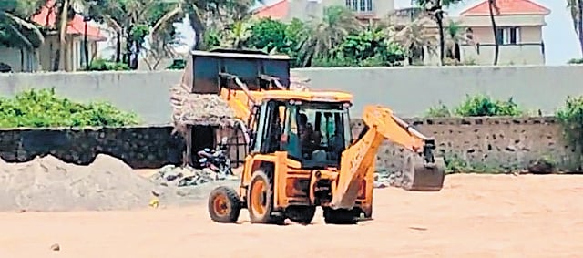 “They have covered the view from outside with metal sheets and are continuing with the construction. On Tuesday, the work started at 6am and continued till 7pm,” Mahendran Mani, a local fisherman, said.