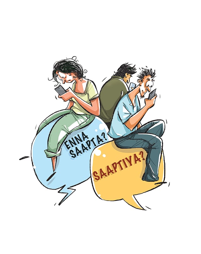 Although used by people across two generations, Kavitha strongly believes that Millennials “invented” it and normalised it as a flirty text. But she says women across these two generations don’t ask this question nearly as much. While many women admitted to asking this question out of care to their partners, or repeating the question to men — ‘neenga saapteengala?’ — as a follow-up to their ‘saapteengala,’ merely out of respect, they vouch for never using it as a conversation starter or as a flirty message. “It is always different when it comes from Tamil men,” Smruthi exclaims.