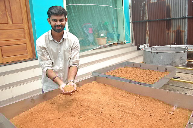 But production came with its set of challenges. Palm jaggery melts and also develops fungus quickly, making storage difficult. To find solutions to this problem, he partnered with university researchers and developed a powdered version that increased shelf life and matched the convenience of white sugar. “Customers don’t need to break the jaggery or boil it anymore. They can just use it in spoonfuls like sugar,” he says.