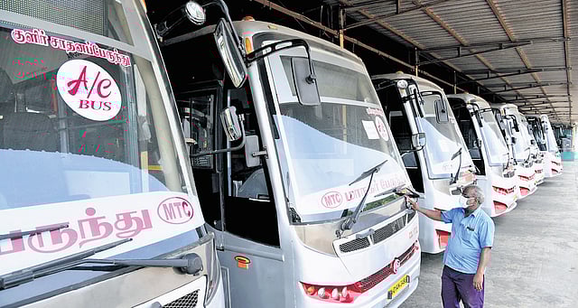 Currently, MTC’s fleet comprises 3,056 buses, including 50 AC buses that primarily serve Thiruporur, Siruseri Tech Park, KCBT, and other areas. These AC buses operate on routes such as Thiruvanmiyur-Central railway station, Broadway-Tambaram/Vandalur, Tambaram-Thiruvanmiyur, Broadway-Guduvanchery, Perambur-Thiruvanmiyur, and CMBT-Siruseri/Thiruporur.