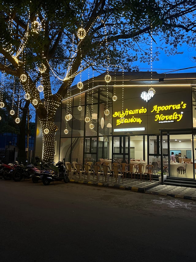 If the reels you saw of Apoorva’s Novelty in Shenoy Nagar made you think of it as a new hot spot in the city, ask the decades-old foodies, and they will tell you that this is the improved version of their favourite Novelty Tea House. For almost 67 years, the cosy, vintage-looking building, blending old-world charm with modern functional design, was nestled in the heart of Mint Street, Sowcarpet. “Apoorva is my daughter-in-law’s name. The restaurant is the same old Novelty Tea House, but in a new model,” explains Jithendra Chandrakanth Shah, franchise partner, Apoorva’s Novelty.