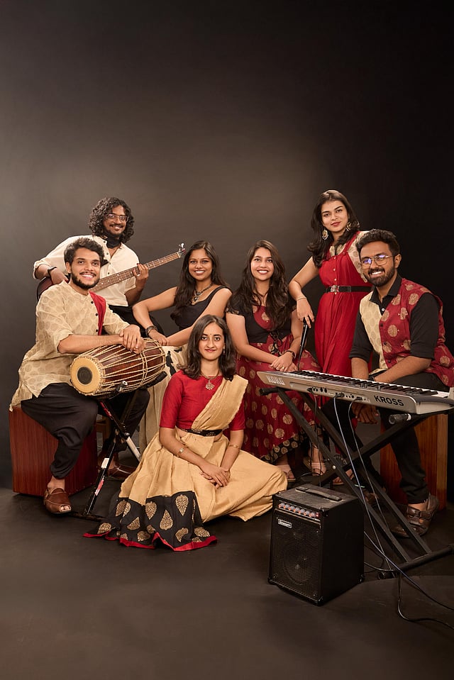Aditya blends traditional instruments like the Ganjira and Ghatam with global percussion instruments like the Cajón, while beatboxer Akshara Satheendran adds a contemporary edge with electronic drum sounds. “We wanted to mix the traditional with the modern,” says Aditya. The music is a reflection of this fusion, incorporating the sounds of Nadaswaram and temple bells alongside the modern-day noise of traffic and technology. The other members of the band include vocalists Bhargavi Manogna, Sivaranjini Chandramouli, and Shreemathi Jagannathan, keyboard by Srivatsan Ganesh, bass guitar by Madhumithran M, and lyricist Sivamadhavan.