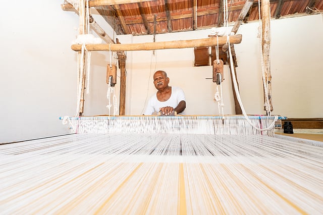 “My first trip to Bhavani [in Erode] was just as a tourist to see how jamakkalam is made. I saw a few striking visuals. All the weavers were old. No youngsters were seen. Secondly, there were a lot of looms covered with cobwebs, not in use,” she recalls. The sight of very few weavers spinning in a room, with rows of 40-50 looms, and their words, “The next generation is not interested in doing this because they feel they can’t earn much,” were etched in Vino’s mind.