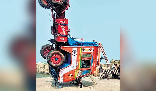 According to officials, Muthumarriappan had arrived at the Chennai Port on February 5 to transport a container carrying solar panel equipment. After completing work, he allegedly began his return journey to Tirunelveli. However, while exiting the port, he reportedly took a wrong turn and the truck fell into the water at the North Coastal Berth around 1.30 am. Police said the rear portion of the vehicle was severely damaged during the fall.