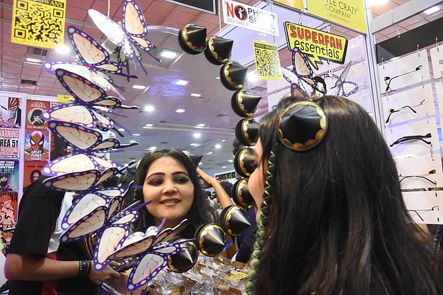 On the opening day on Saturday, some hurried in excited groups, while the others took their time. Car mirrors became dressing tables and phone screens doubled up as compact mirrors. One cosplayer practised her Joker grin in the rear view mirror, perfecting the tilt of her head. Another carefully removed his vintage World War prop gun from the rear end of the auto. Nearby, a young woman assembled her costume and secured her wig as curious security guards watched from a distance.