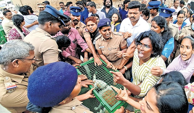 CHENNAI: Heated exchanges between Greater Chennai Corporation (GCC) officials and city-based animal activists over removal of stray dogs from the Madras High Court premises on Wednesday caused a furore on the court campus. The standoff outside the court erupted after the civic body dog catchers began removing stray dogs from around 5 am and taking them to the Pulianthope Animal Birth Control (ABC) centre.