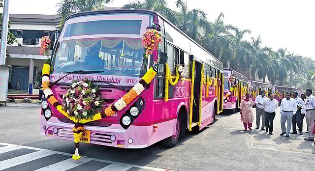 Marking the launch of the service, the chief minister flagged off the pink-coloured buses at a function held at the Nandambakkam Trade Centre.