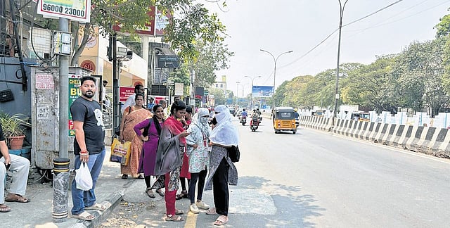 60-year-old K Sarada told TNIE waiting at the stop without a shelter under the hot sun is very difficult, especially for elderly people like herself.