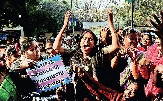 “The Bill is a direct attack on the hijra community and their traditional way of life. The Modi government cannot use the Bill against us. We should be involved in formulating a Bill, which is aimed at safeguarding our interests,” said Jhuma, a member of the trans community, from Kolkata, who was among the scores at the site of protest on Friday.