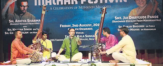 Music lovers all over Delhi welcomed the rain gods with two soulful Hindustani classical vocal performances by Aditya Sharma and Jui Dhaigude Pande at Triveni Kala Sangam. The event, Malhar Festival, was organised by Pracheen Kala Kendra.