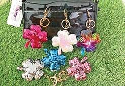 These clover key chains in pink, white, silver, blue and multicolour have a golden ring and clasp to attach to bags or belts. Each leaf has a meaning: for luck, love, hope, and faith.