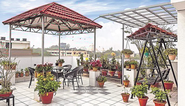 Use white heat reflective tiles, recycle and re-use waste water with recharge pits, have vertical gardens on roofs and terraces, go for solar panels, solar geysers, rainwater harvesting, use LEDs for lights and shading devices like pergola and trellis etc.