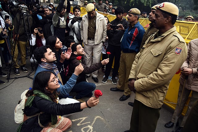 This comes a day after anti-citizenship law protesters offered roses to security personnel at the Jantar Mantar, saying police can baton charge them as much as they want, but their message is "love in return for hatred".