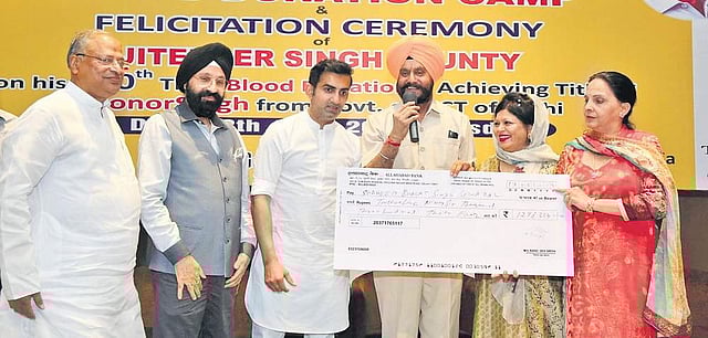 NEW DELHI: The Delhi State Blood Transfusion Council on Tuesday felicitated social worker Jitender Singh Shunty on his becoming the “first Sikh in the world to donate blood 100 times”. Shunty was also awarded the title of #DonorSingh.