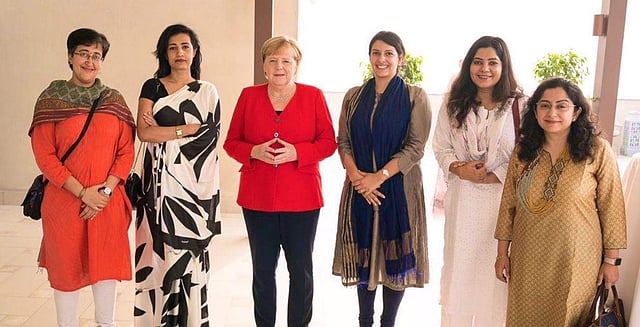 NEW DELHI: German Chancellor Angela Merkel on Friday met five women including senior AAP leader Atishi and Supreme Court lawyer Karuna Nundy here, sources said.