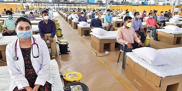 One thousand more ancillary and security staff have been deployed in shifts. The centre also has about 75 ambulances. The total capacity at this centre can be ramped up to 10,200. The centre is 1,700 feet long and 700 feet wide — roughly the size of 20 football fields — and has 200 enclosures with 50 beds each. Officials have said this is the largest CCC in the national capital as well as in the country.
