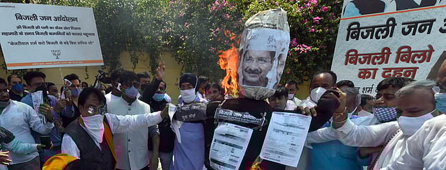 NEW DELHI: The Bharatiya Janata Party (BJP) staged a protest outside the residence of Delhi Chief Minister Arvind Kejriwal on Monday against the 'huge' power bills during the lockdown period. BJP workers led by city president Adesh Gupta burnt electricity bills in protest and sought fixed charges to be waved for nine months i.e. March to November.