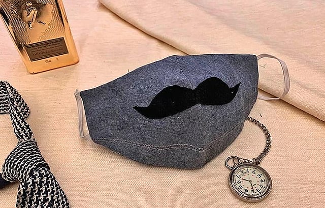 Most of the designers and boutiques are using high-weave linen and cotton for the safety gear as it’s breathable. Like, Believe Masks by Ayesha Bedi that makes a statement with the chic embellishments and motifs. “I am also making jute masks, which are a hit. Since jute is a thick fabric, I use one layer inside in the three-layered mask. The pleated pattern takes a curvy shape on the nose, and the cotton-based elastic earloops are comfortable to wear. The motifs make the masks prettier with teddy, flowers, sunglasses, and moustache and anchor motif for men, as options,” adds Bedi.