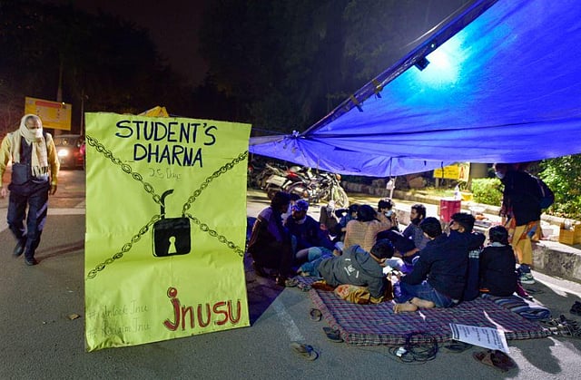 He has chosen this university for installing the statue but whenever students raise their voice on any issue, everybody comes “hounding” and demands that the university should be shut, said JNUSU president Aishe Ghosh, who was leading the protest at the varsity’s north gate.
