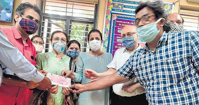 The association’s president Ashok Agarwal and its member Teena Sharma recently handed over a demand draft of Rs 4.44 lakh to the principal of Sarvodaya Co-ed Senior Secondary School in Moti Bagh, which will ease the burden on its 190 students of class 10th and 12th. The money was collected through crowd funding after AIPA was informed that several parents are finding it difficult to pay up board examination fee, which has increased excessively.
