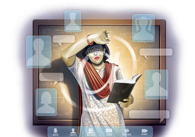 With additional responsibilities at home, the requirement to learn online tools at a quick pace proved irksome. (Express Illustrations | Amit Bandre)